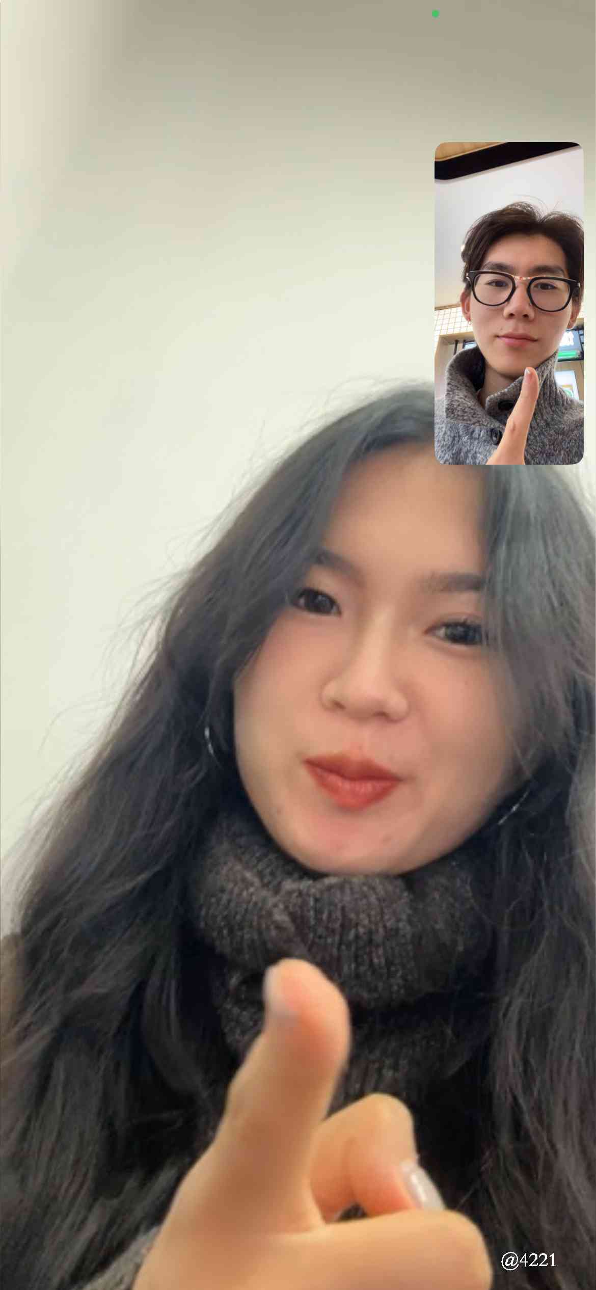 每次穿衣服都很有默契,总能在没有商量的前提下穿同色系或者同类型的衣服。辽宁国庆后气温骤降,我翻出了压箱底的毛衣,早上下课到了食堂就赶紧给康雪打了视频看看她是不是也和我一样因为国庆调休累的想死,一接通我们互相看到对方穿的衣服就绷不住笑了,这是我们又一次在互相没说的情况下穿一样的衣服,然后我们也和每次一样默契的开始说是对方模仿自己穿衣服。(她模仿我的)